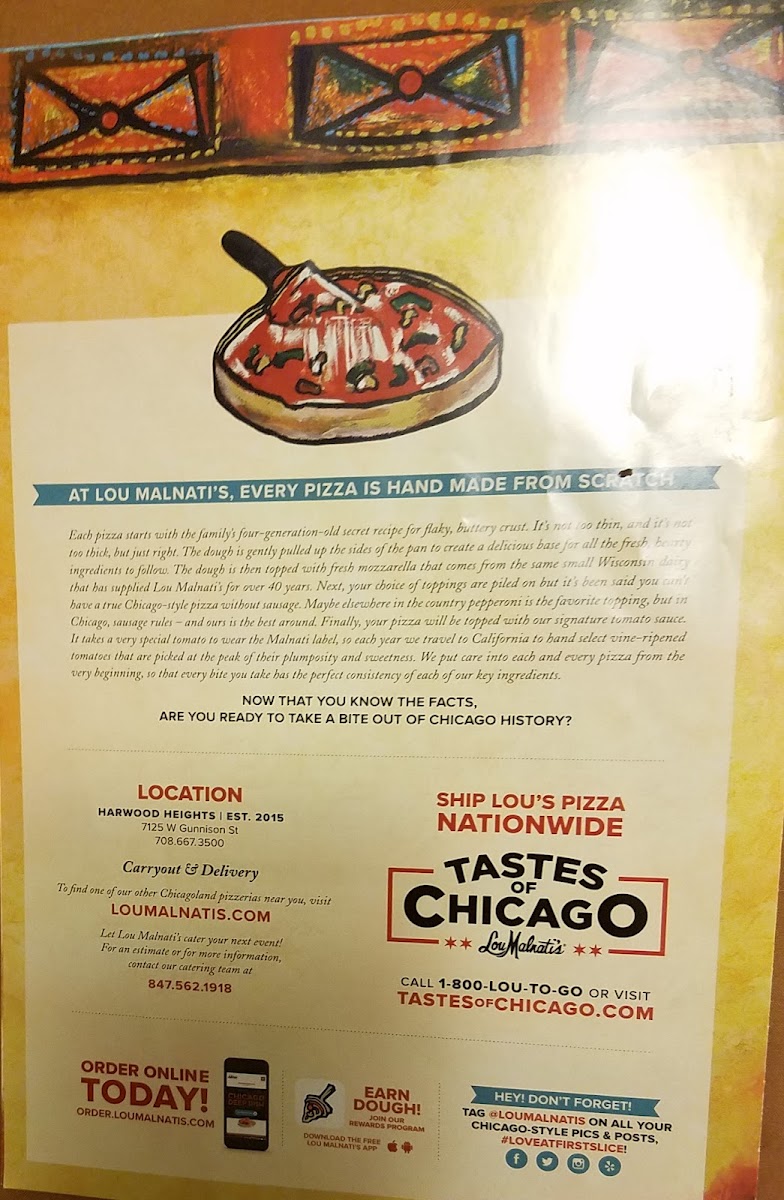 Introducing Lou Malnati's Pizzeria, an iconic destination for pizza lovers nestled in Harwood Heights, Illinois, this carry-out only eatery specializes in Chicago-style deep dish pizza, renowned for its buttery crust and generous toppings.